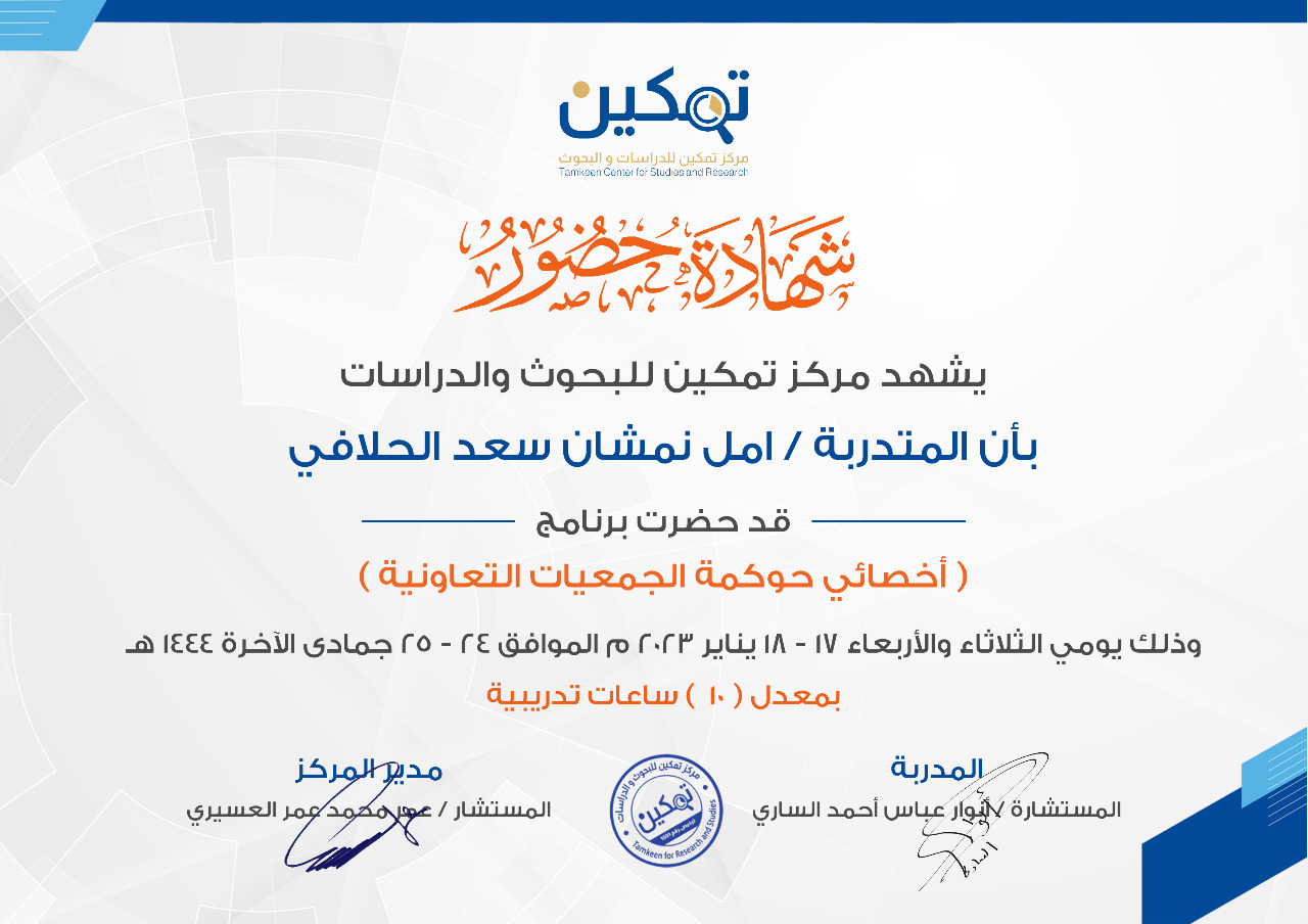 - شهادات تدريب مجلس الادارة و العاملين في برنامج مخاطر تمويل الإرهاب